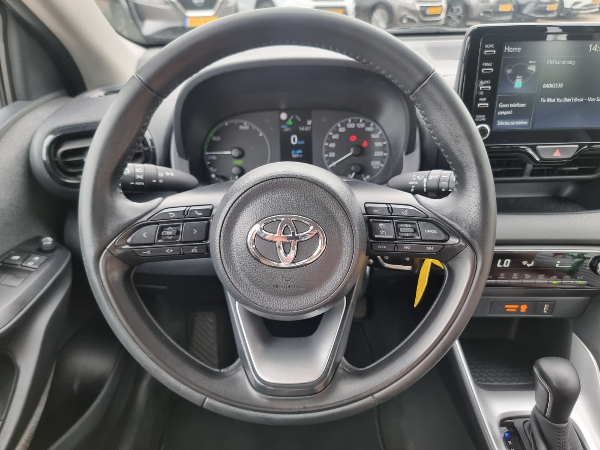 De Yaris is uitgevoerd met de betrouwbare 1.5 Hybrid benzinemotor (93 pk) en een automatische transmissie. Daarmee rijdt hij niet alleen soepel en stil, maar ook uiterst zuinig: met een gemiddeld verbruik van slechts 3,8 l/100 km en een lage CO₂-uitstoot van 87 g/km (energielabel A) is dit dé auto voor wie comfort en lage gebruikskosten wil combineren.